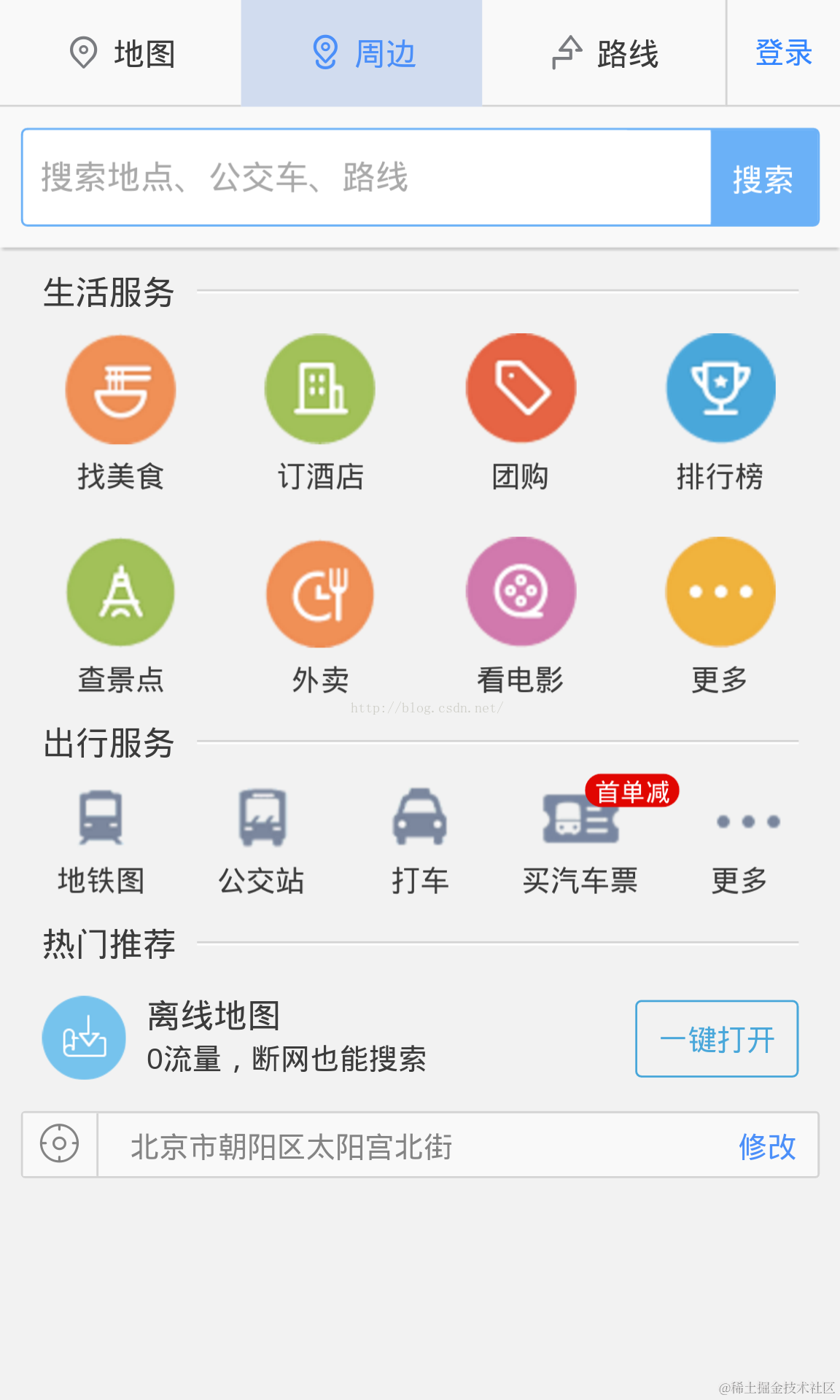 在上面的图中,我们可以看到有一个"百度地图"的标题栏.它可以让我们返回以前的页面.