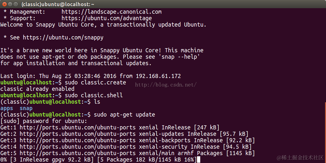 这样我们就安装好了我们的系统,我们可以用这里的环境来交叉编译我们的任何一个snap应用.编译后的snap包就可以直接在我们的树莓派上直接运行: