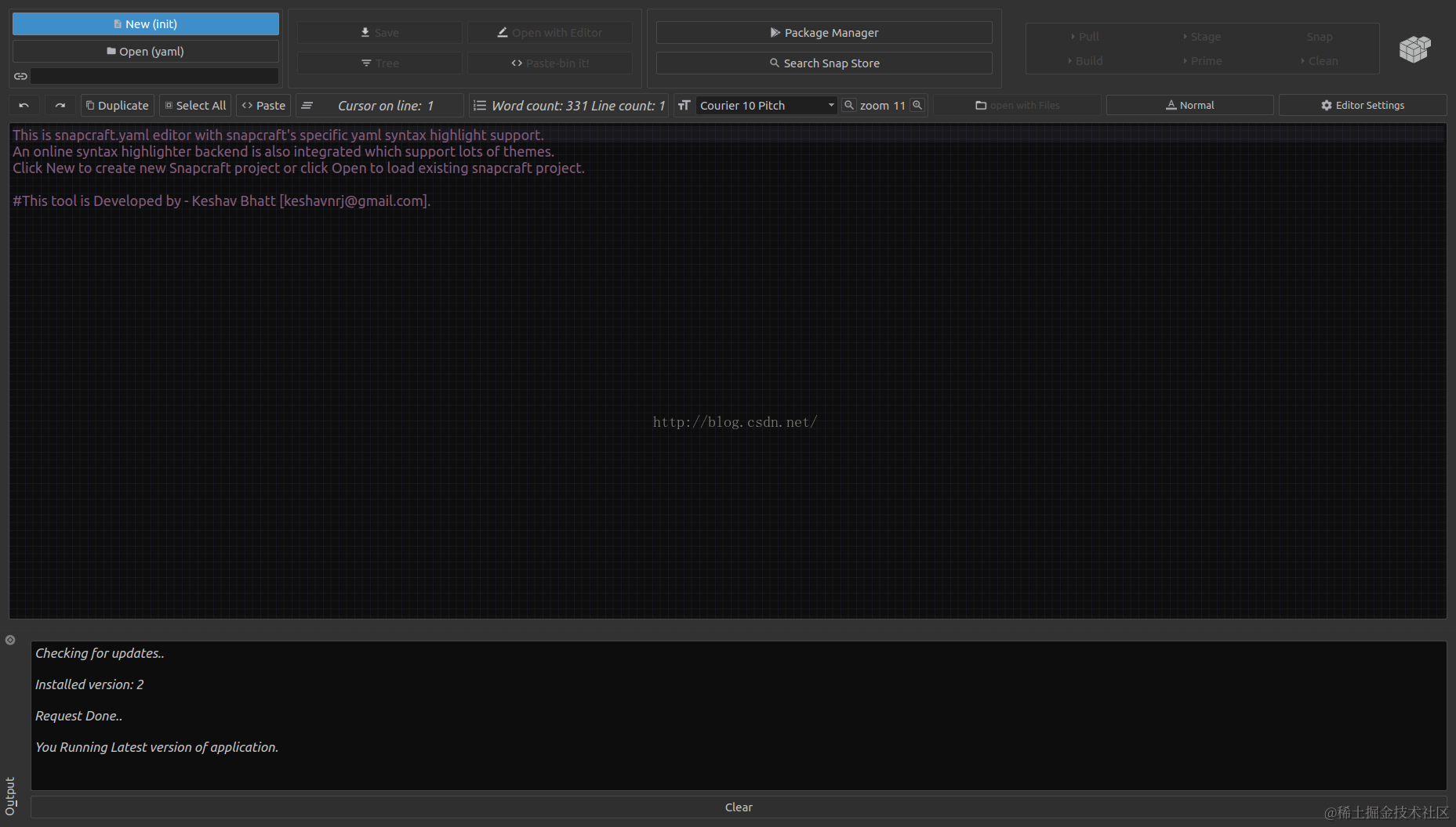 我们也可以关掉当前的项目,并点击" New (init) "来创建一个崭新的项目(snapcraft.yaml),比如: