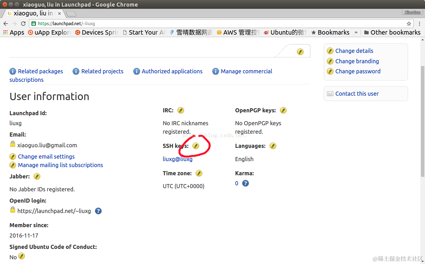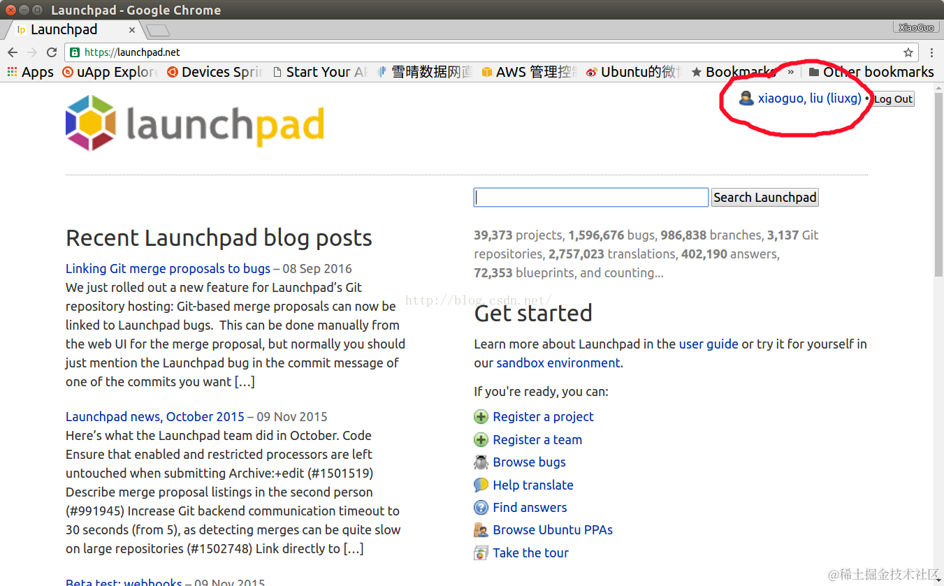 一旦我们有了自己的Ubuntu One账号,我们可以在 launchpad.net/上进行登陆.