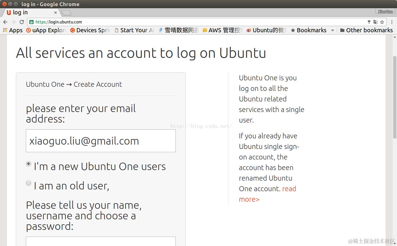 对于还没有自己的Ubuntu One账号的开发者来说,请到如下的地址: