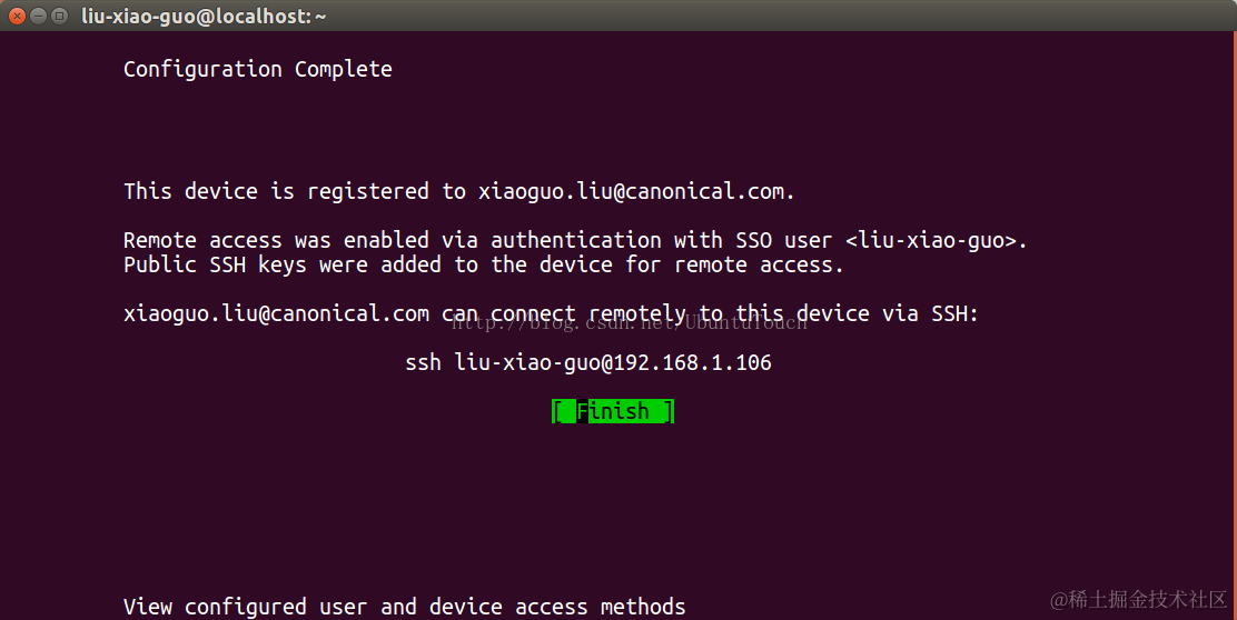 具体的登陆步骤可以参阅我的文章" 安装Ubuntu Core系统".