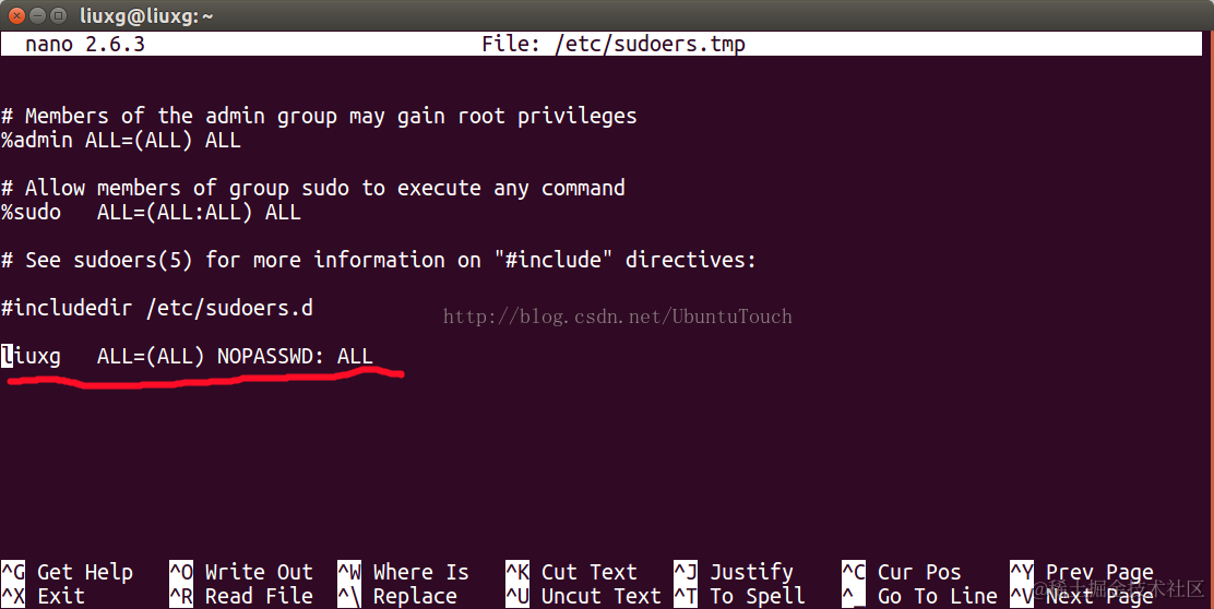 注意这里的 liuxg是我们刚才创建的用户名.开发者需要替换为自己的用户名.