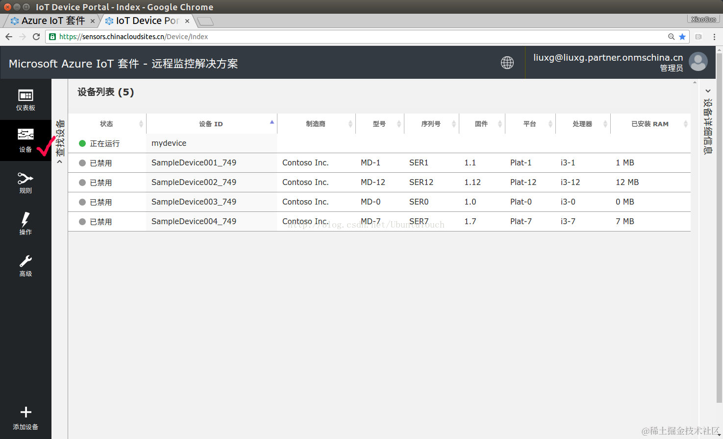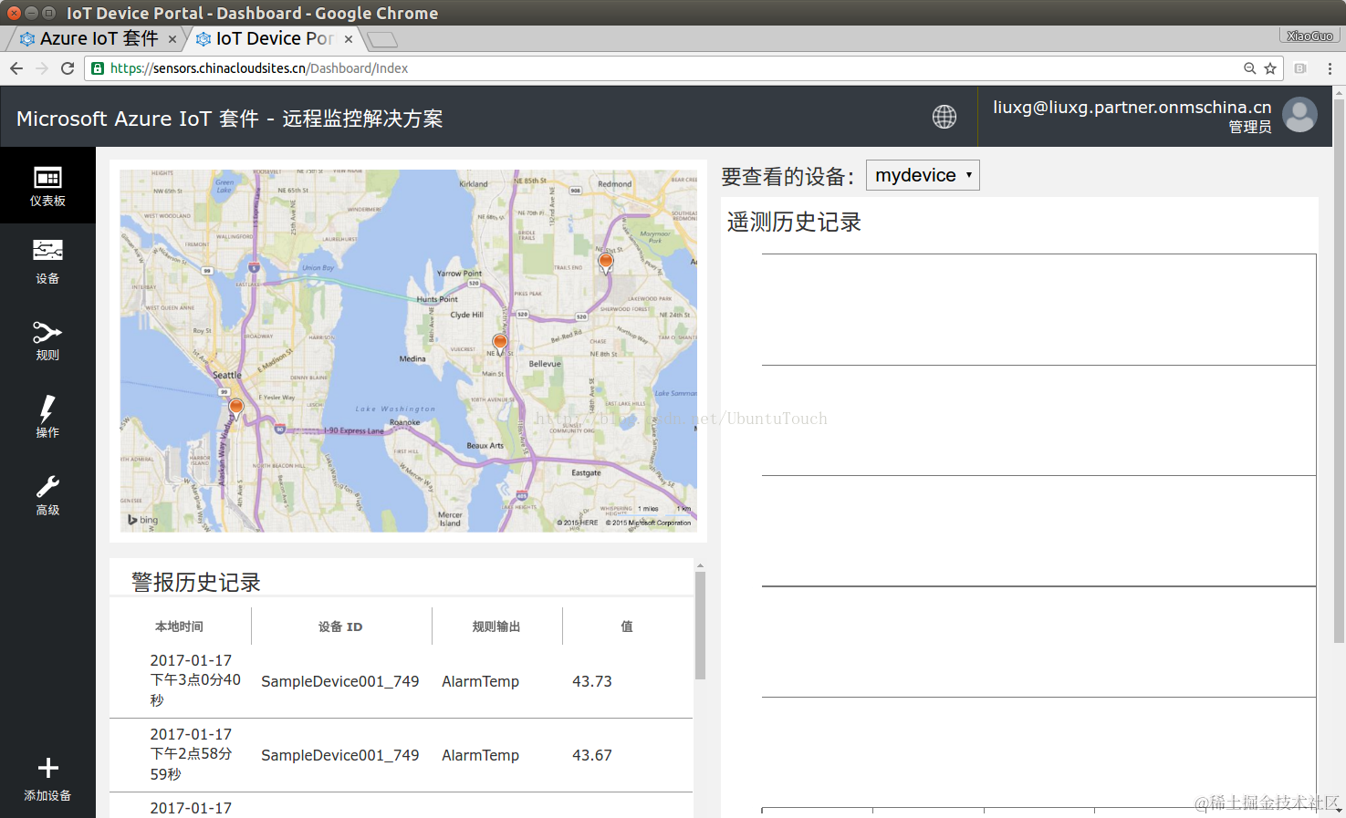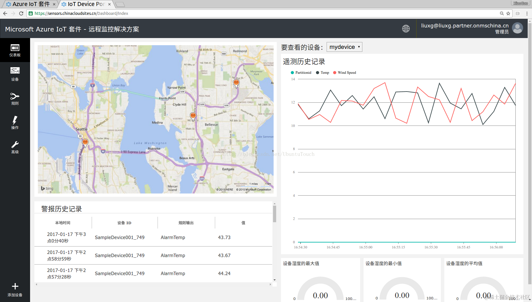 我们可以通过 www.azureiotsuite.cn/来查看我们已经收到的数据: