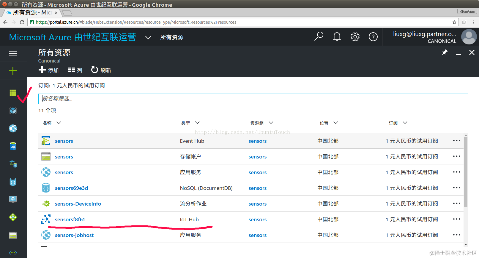 我们也可以打开 azure.cn来查看我们已经创建的所有的资源: