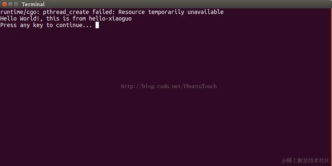 运行"Hello World"应用显示: