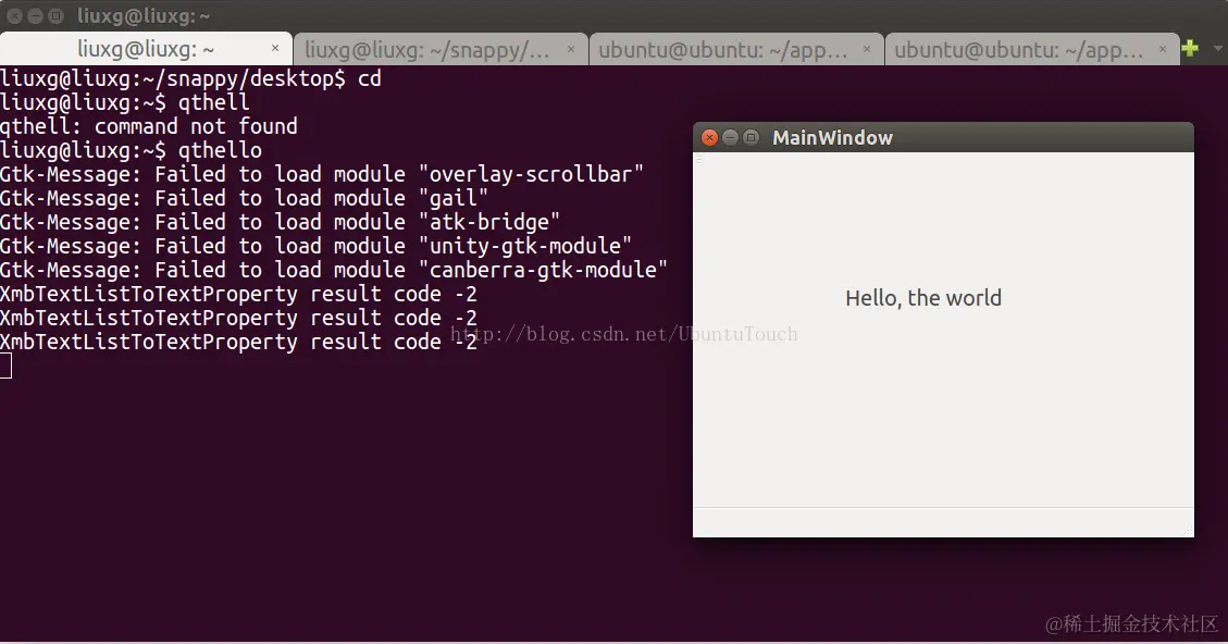 我们安装好qthello应用,并执行: