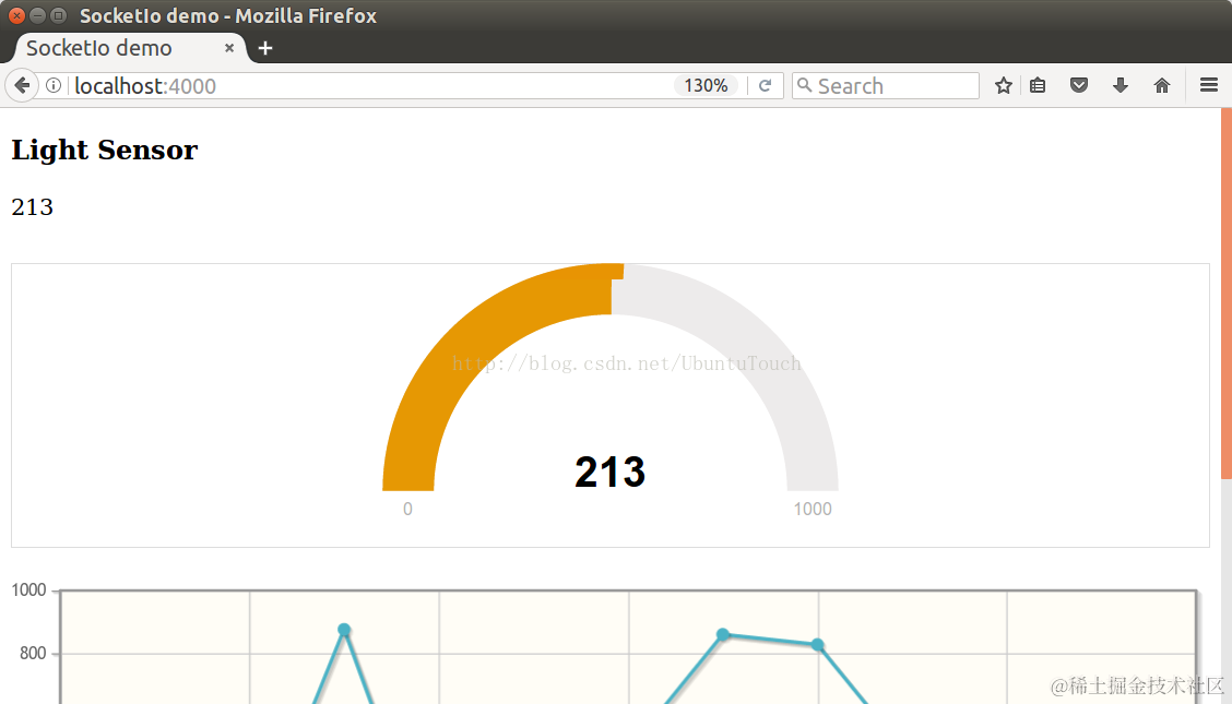 在代码的第一部分,我们创建了一个webserver,它使用的端口地址是4000。我们也同时启动了socket.io服务器,等待客户端的连接。一旦有一个连接的话,我们使用如下的代码每过一段时间来发送一些数据: