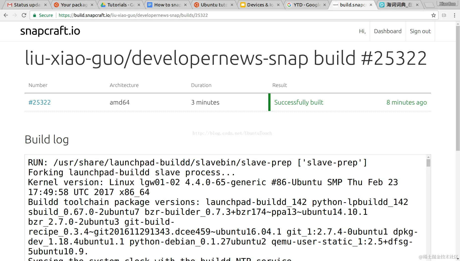 通过build.snapcraft.io来打包