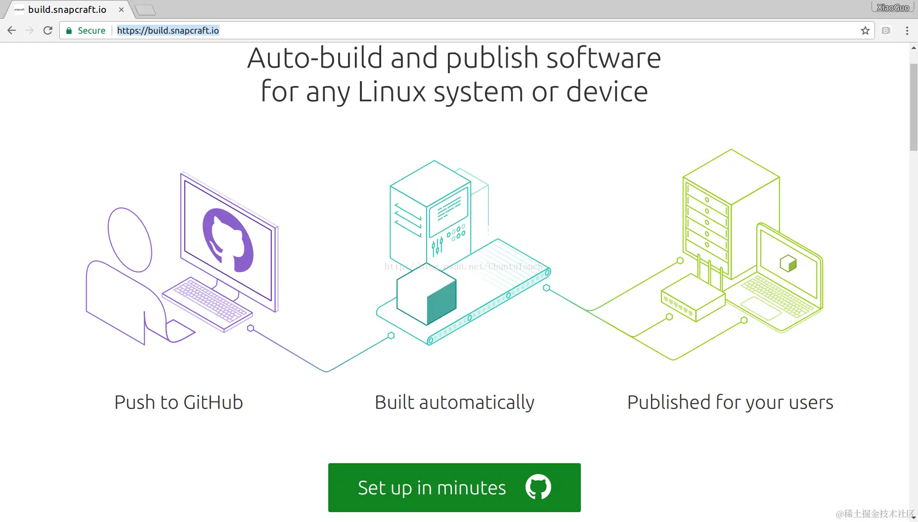 我们可以在 build.snapcraft.io/网站上选择我们自己的repo。
