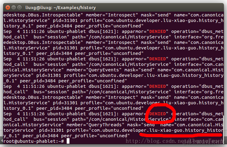 root@ubuntu-phablet:~# grep "DENIED" /var/log/syslog
