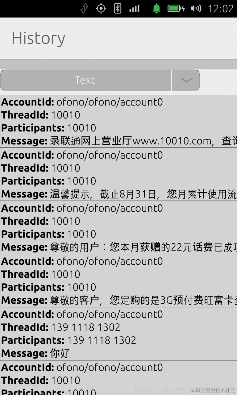 在Ubuntu平台上面,我们可以使用History API来读取电话本及短信的内容,并使用listview来显示出来。下面我们来展示该怎么做。