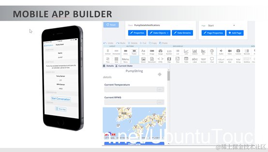 运用拖拽的可视化工具来创建移动端的H5应用。这个应用可以接受来自Vantiq平台的通知信息,客户端输入,人机交互等。