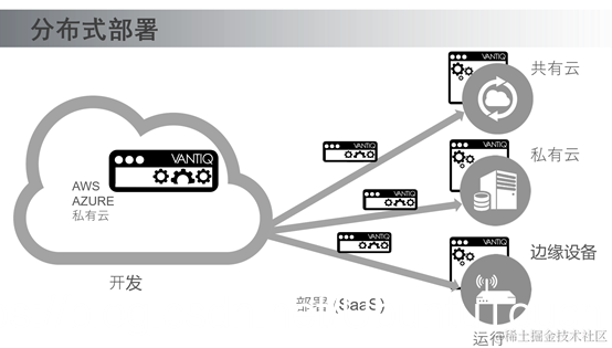 从部署的角度来说,我们可以在一个自己熟悉的云上开发的应用,直接通过Vantiq平台远程部署到相应的节点,从而不用到现场进行部署。甚至我们可以随时根据需求动态地重新部署及调整我们的应用。