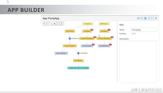 可能大家到这个时候,很想知道Vantiq的应用到底是什么样子的。一个实时的,事件驱动的Vantiq应用是这样的: