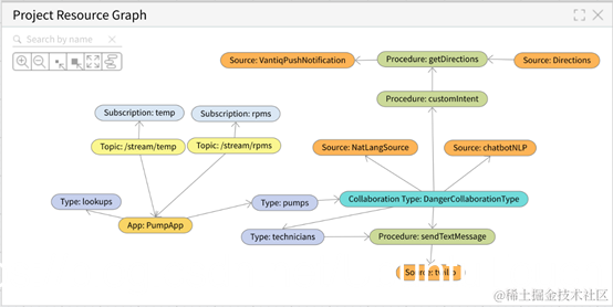 - Ingest: 通过Vantiq的规则引擎,每当数据源有数据变化时,Vantiq可以捕获这种变化,并结合本地数据生成新的数据流。比如一个传感器传入的数据含有一个传感器的id,但是它并不含有它的设备id及位置信息等。这个传感器的id可以和Vantiq本地数据结合来生成更加丰富的数据