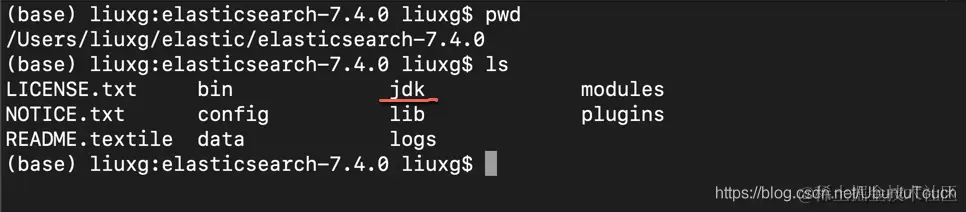 上面的最后一行所在的目录代表 $ES_HOME。在下面的表述中我们使用它来进行表述我们的安装目录。