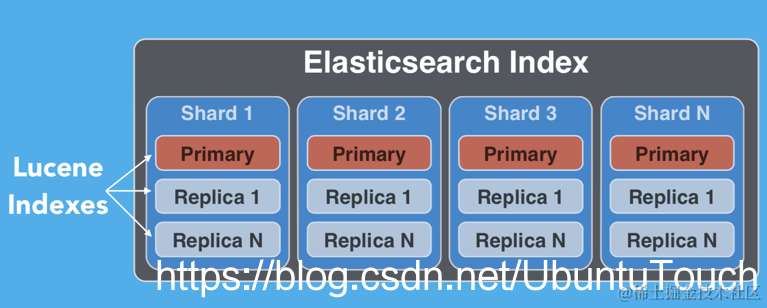 有两种类型的分片:primary shard 和 replica shard。