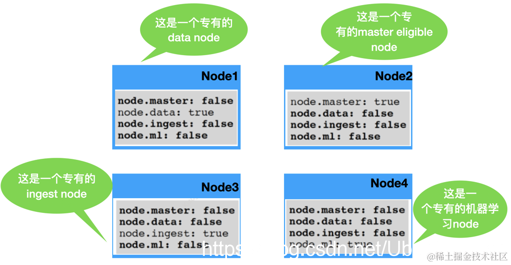 上面的定义适用于 Elastic Stack 7.9 发布版以前。在 Elastic Stack 7.9 之后,有了新的改进。请详细阅读文章 “Elasticsearch:Node 介绍 - 7.9 之后版本”。