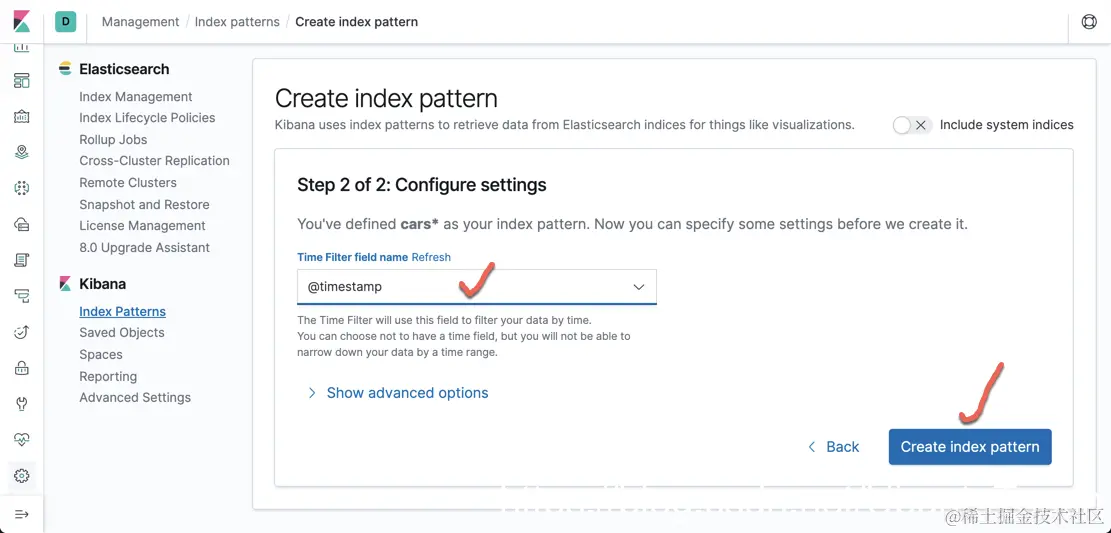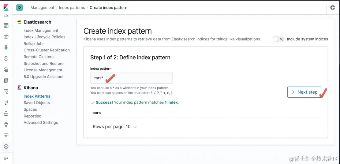 我们建立一个叫做 cars* 的 index pattern。