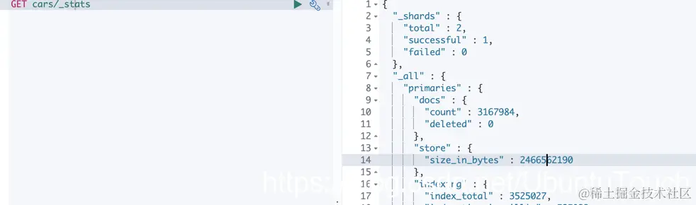 我看可以看到我们的cars Index的统计数据: