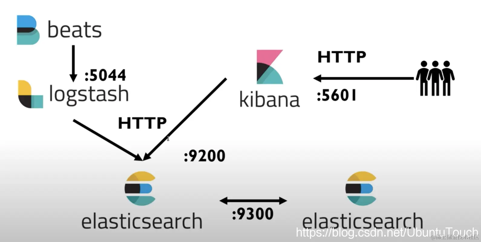 在今天的应用中,我们将使用 Filebeats 来读取我们的 log,并把数据传入到 Logstash 之中。通过 Logstash 的 Filter 的处理,并最终送人到 Elasticsearch 中进行数据分析。在上面的配置中,默认的端口显示如下: