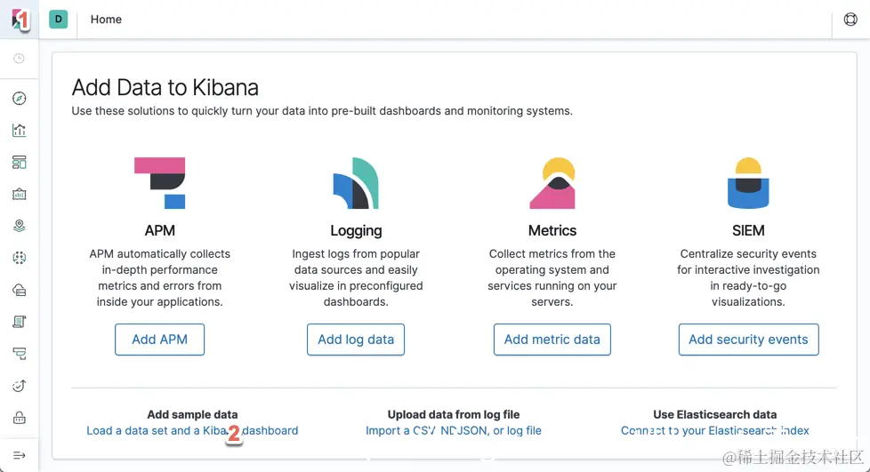 显然,它帮我们生产了一个叫做 logs-2019.10.21-1 的 index。接下来,我们先使用我们的 Kibana 来准备一下我们的 index 数据。我们运行起来我们的 Kibana: