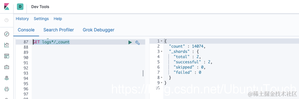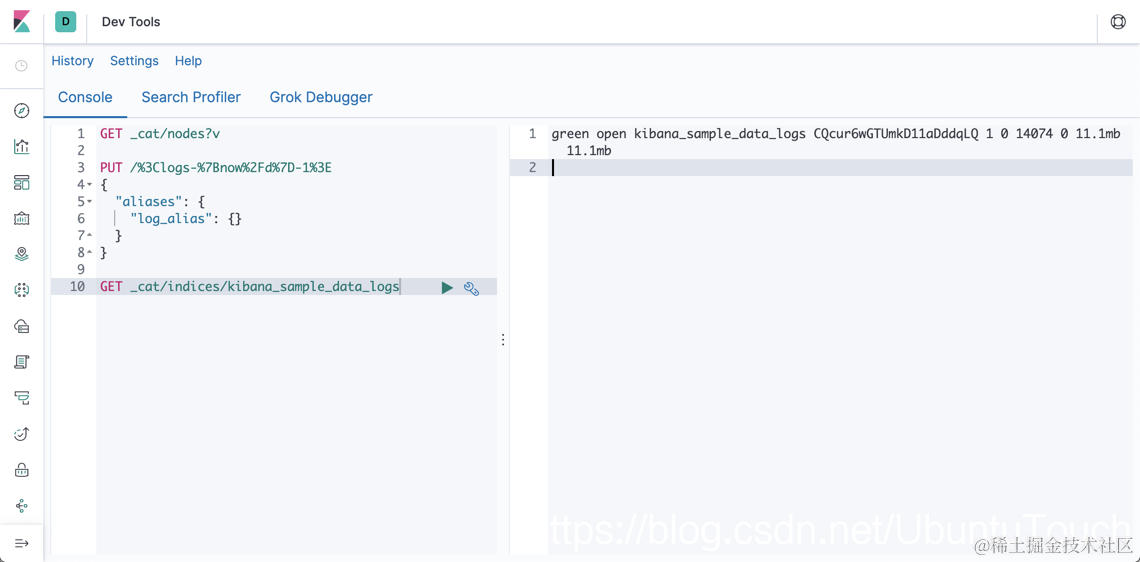 其实这个我们也可以通过 Kibana 帮我们来实现。请按照如下的步骤: