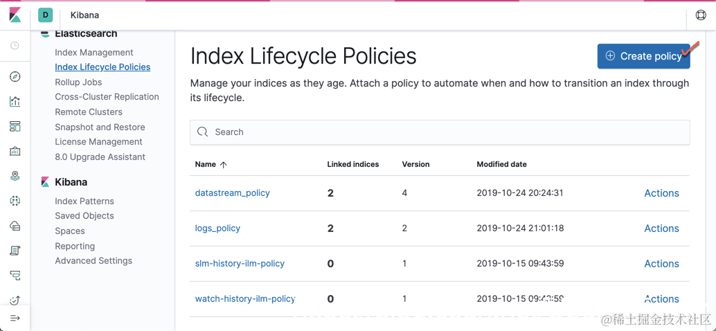 我们可以通过如下的方法来建立一个 ILM 的 policy.