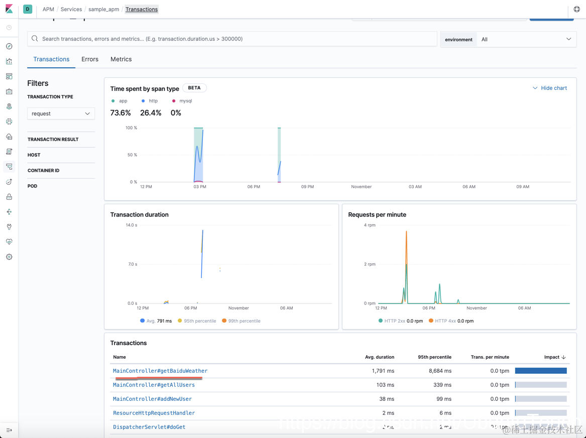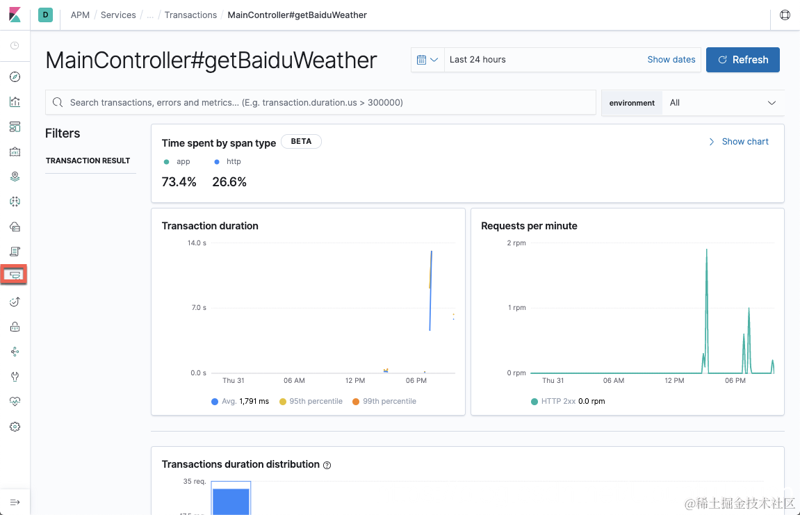运用 Elastic APM,它可以很方便地帮我们定位出为什么我们的每个请求需要花这么多的时间来完成,中间的每一个时间都是花在哪里了?