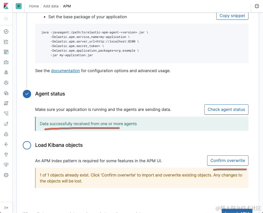 等我们的 Spring Boot 应用完全起来后,我们点击 Kibana 中的 “Check agent status” 按钮。这个时候可能显示没有任何的数据。我们可以打开我们的浏览器,并在浏览器的地址栏中输入如下的地址:
