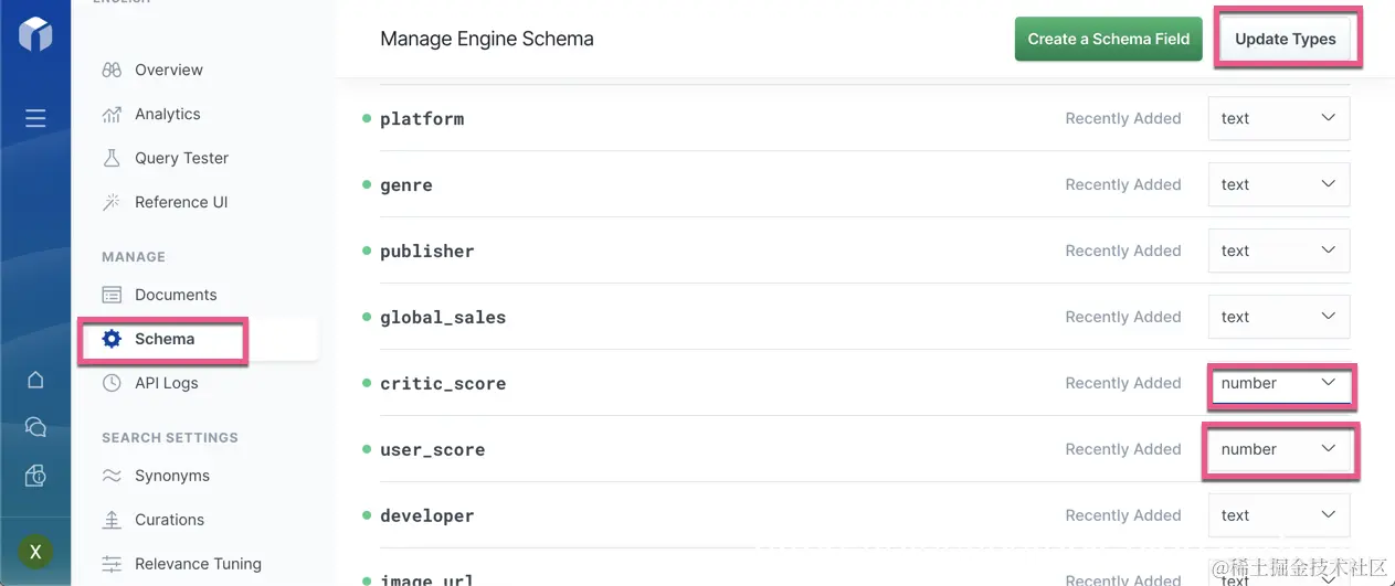 - 调整schema,并将user_score和critic_score更改为数字字段。