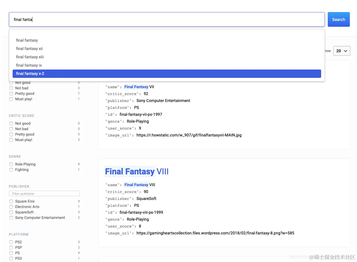 尽管看起来我们目前做的并不多,但我们现在拥有功能全面的搜索引擎,可以使用完善的搜索API来搜索我们的视频游戏数据。