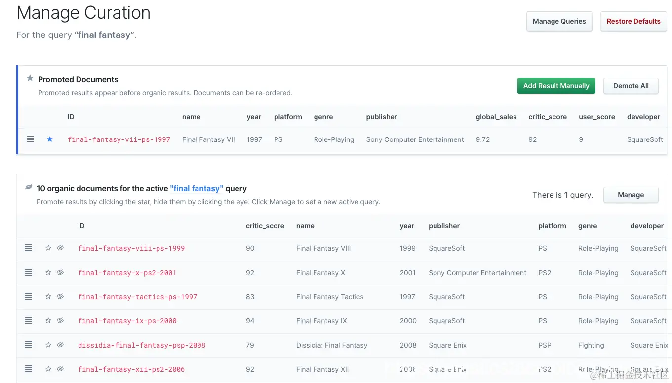 我们可以升级和隐藏许多文档。 我们甚至可以对升级后的文档进行排序,因此我们可以完全控制每个查询顶部显示的内容。