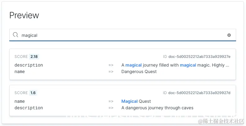 为什么? 因为在“Dangerous”的description中“Magical”一词出现了3次,所以搜索引擎不会知道一个字段比另一个字段更重要。 然后,它将使“Dangerous Quest”的排名更高。 这就是为什么存在相关性调整的难题。