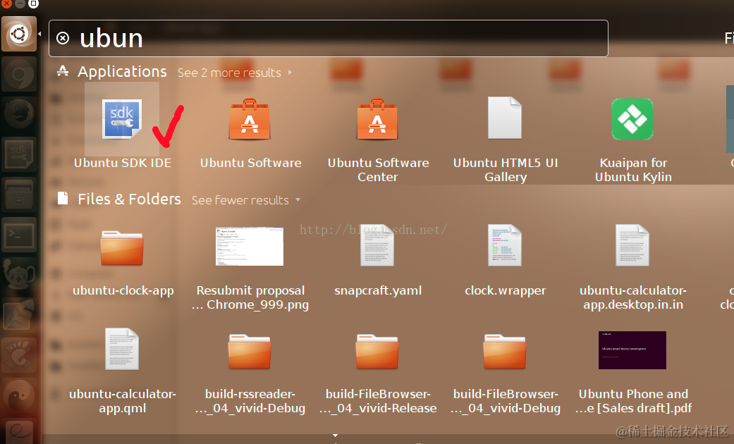 - 在Ubuntu "Unity Dash Applications lens"中寻找 "Ubuntu SDK"
