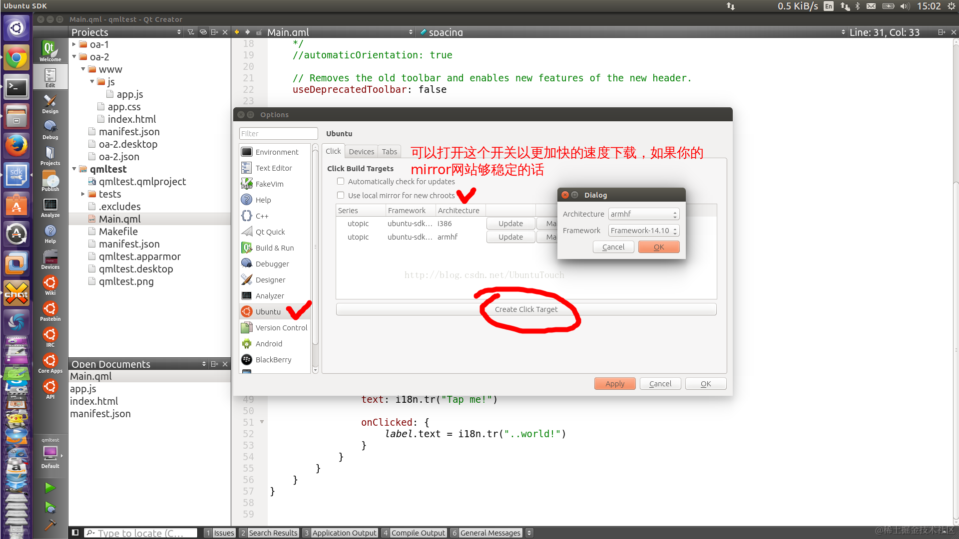 安装Ubuntu SDK armhf chroot ( 建议安装15.04的armhf chroot)