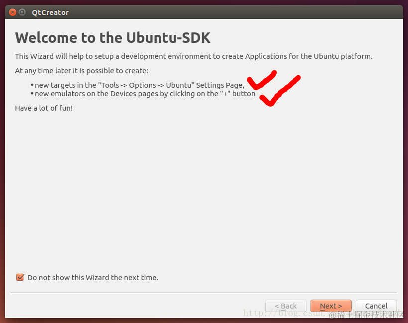 当我们第一次启动Ubuntu SDK时,可以看到如下的界面: