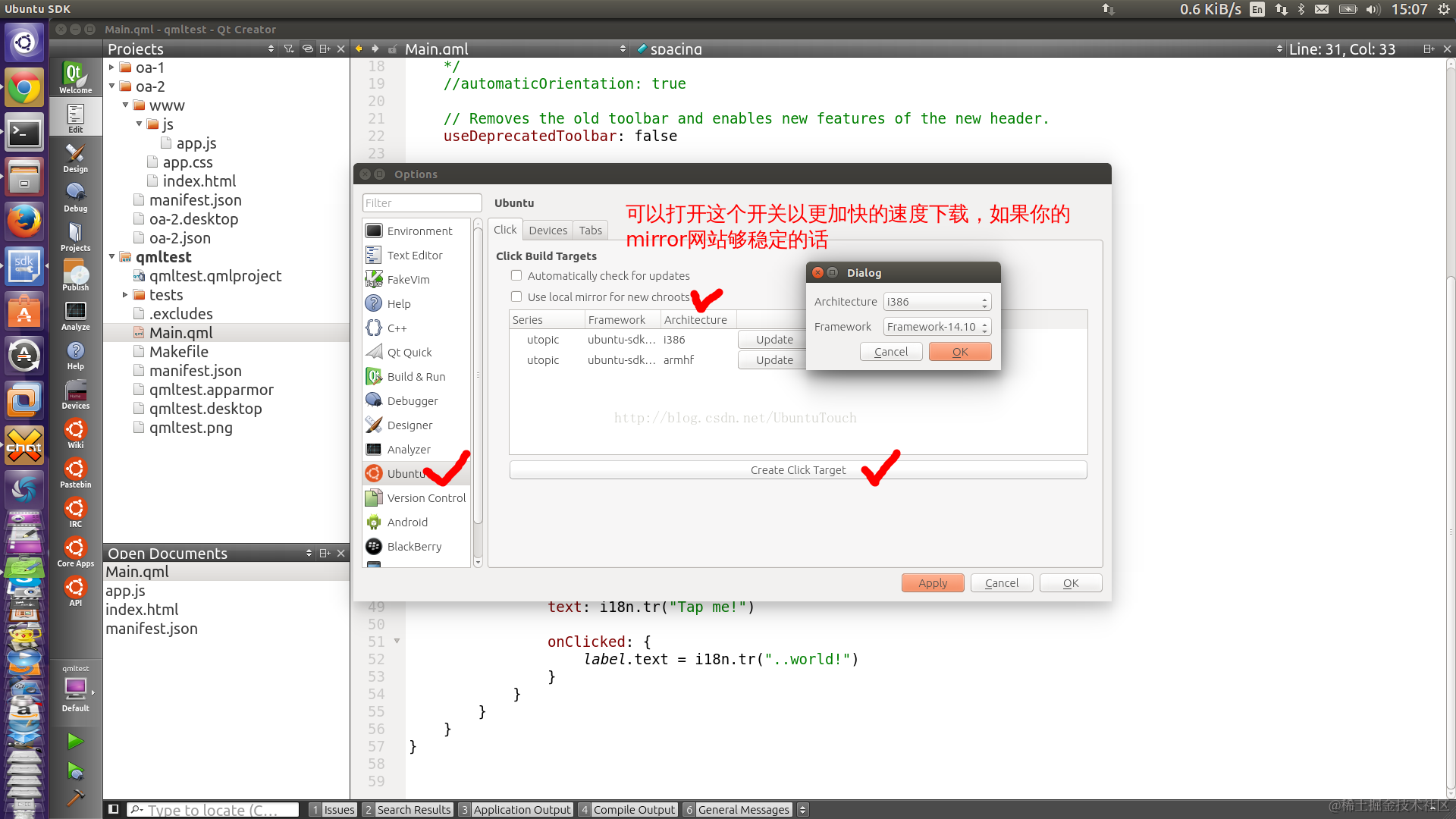 安装Ubuntu SDK是一个比较繁琐的过程.如果大家有什么疑问的话,可以参阅我的视频"Ubuntu SDK安装".