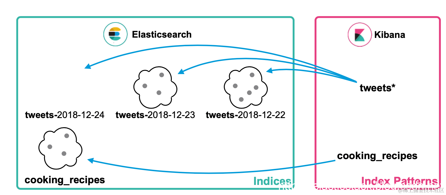 Index pattern:它指向一个或多个 Elasticsearch 的索引,并告诉 Kibana 想对哪些索引进行操作。