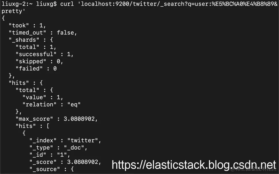 http://localhost:9200/_search?q=user:%E5%BC%A0%E4%B8%89&pretty