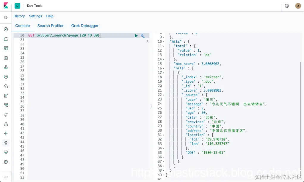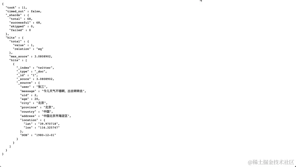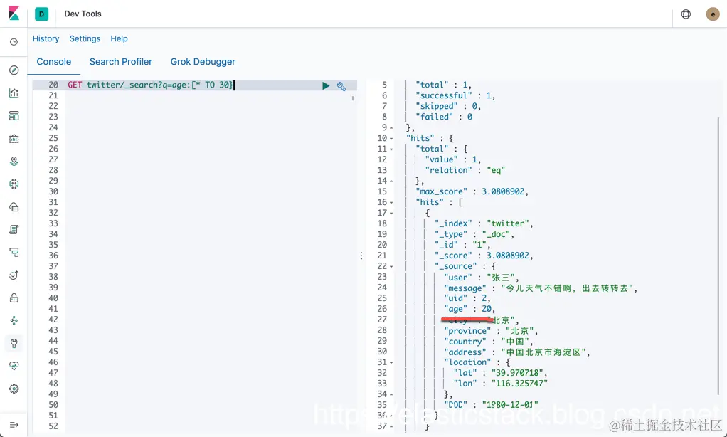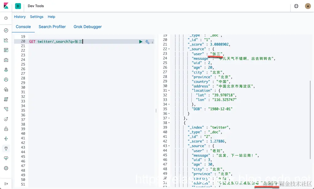 我们可以看到现在 age 为20岁的张三排到了搜索结果的前面。