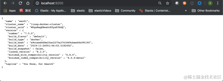 我们可以在浏览器打开localhost:9200来查看信息:
