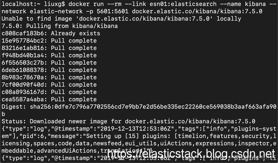 docker run --rm --link esn01:elasticsearch --name kibana --network elastic-network -p 5601:5601 docker.elastic.co/kibana/kibana:7.5.0