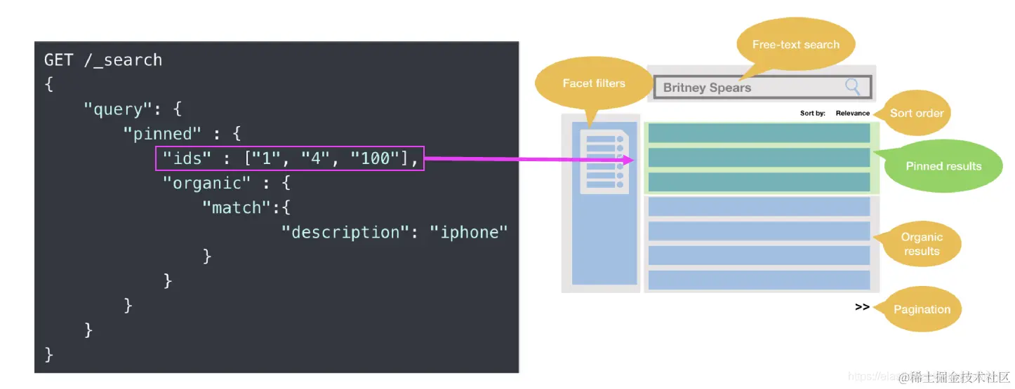 Pinned 查询用来提升所选文档的排名,使其高于匹配给定查询的文档。 此功能通常用于引导搜索者查找精选的文档,这些文档在搜索的任何 “organic” 匹配项之上被提升。 使用存储在_id字段中的文档 ID 来标识升级或“固定”的文档。