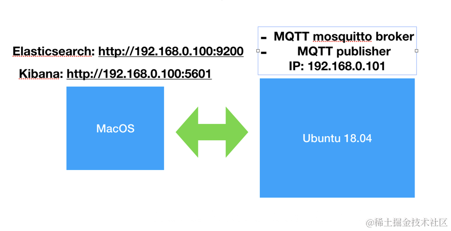 下面,我们来介绍一下如何实现把 MQTT 的数据接入到 Elasticsearch 中来。为了说明问题方便,我们的测试环境是这样的: