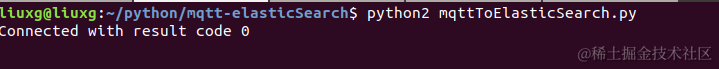 请注意这里的 mosquitto_pub 是来自上面的 mosquitto-clients 安装。那么这个时候再我们的 mqttToElasticSearch.py 运行的客户端中,我们可以看到: