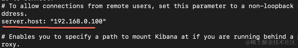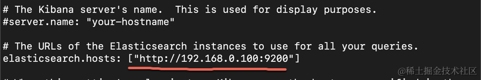 同时找到 elasticsearch.hosts,并把自己的 IP 地址输入进去: