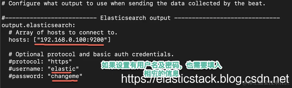 选择上面的操作系统。针对我们的 Ubuntu 系统,它是一个 DEB 格式的安装文件。我们按照上面的要求一步一步地进行安装和修改。在修改 filebeat.yml 文件时,我们需要注意的三点: