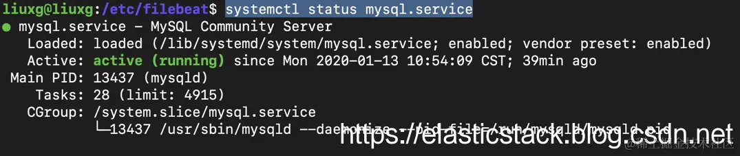 现在,你的 MySQL 已准备好编写慢速查询,这些查询将通过 Filebeat 传送到你的 Elasticsearch 集群中。我们可以检查一下我们的 MySQL 是否已经成功运行: